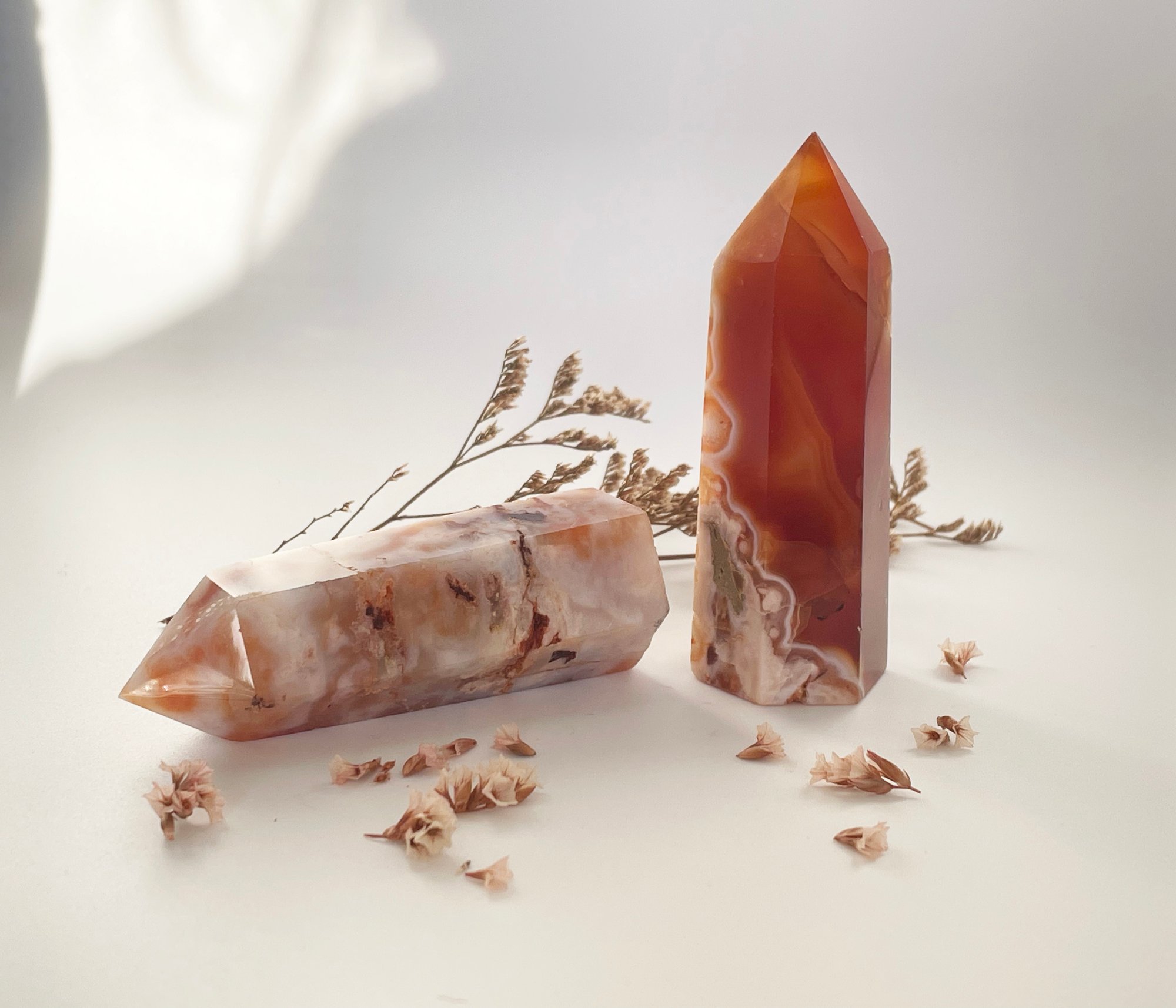 Our high grade Red Flower Agate crystal towers grade feature crystal druzy sections