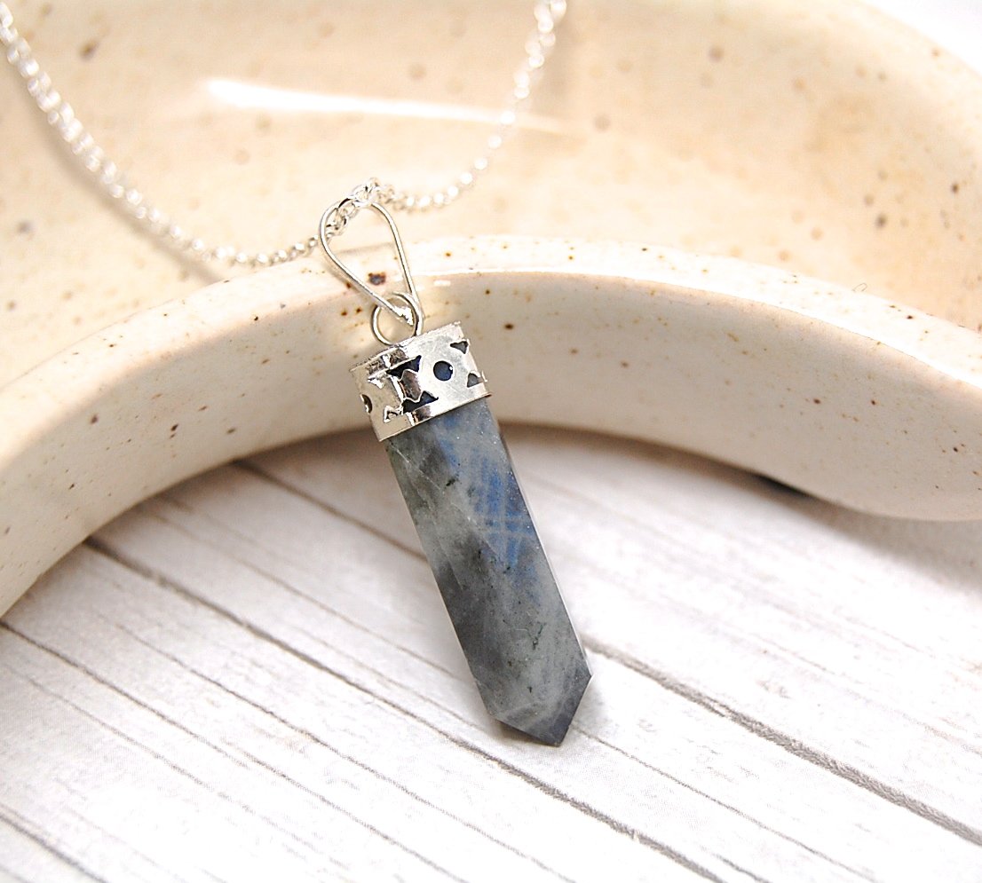 Our gorgeous Labradorite point necklace features a handmade, pointed Labradorite stone pendant